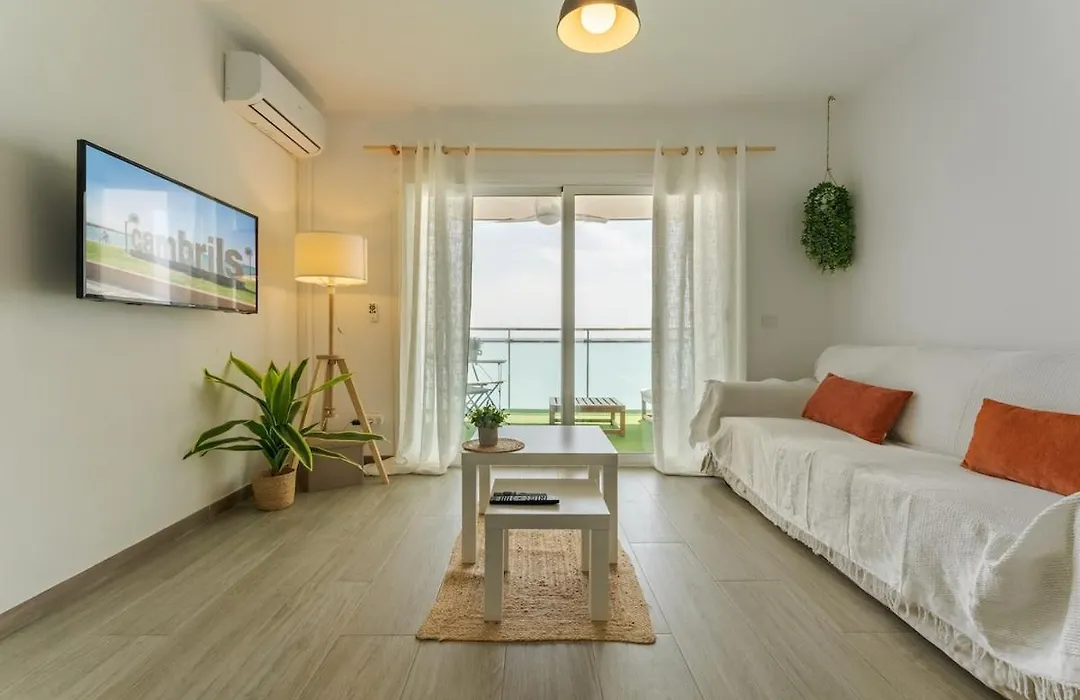 Cet appartement Cambrils Beach - First Line & Sea View - Ac - Wifi comprend un balcon avec une climatisation pour un plus grand confort.